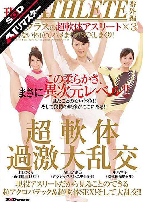 【名作復刻SOD AIリマスター】クラシックバレエ、新体操、器械体操の競技を極めたトップアスリート3名による、究極の軟体SEXがついに登場!!これが、今まで見たくても見ることができなかった究極のアクロバティック超過激大乱交SEXだっ!!Y字バランスでの挿入、オマンコパックリの大開脚フェラ、エビ反り軟体SEX…。男なら一度は憧れる、あり得ない体位での軟体SEXが満載!こんな体位が見たかった!ヤリたかった!!※発売時と収録内容が一部異なる作品もあるため、パッケージ表記と収録時間が異なる場合がございます